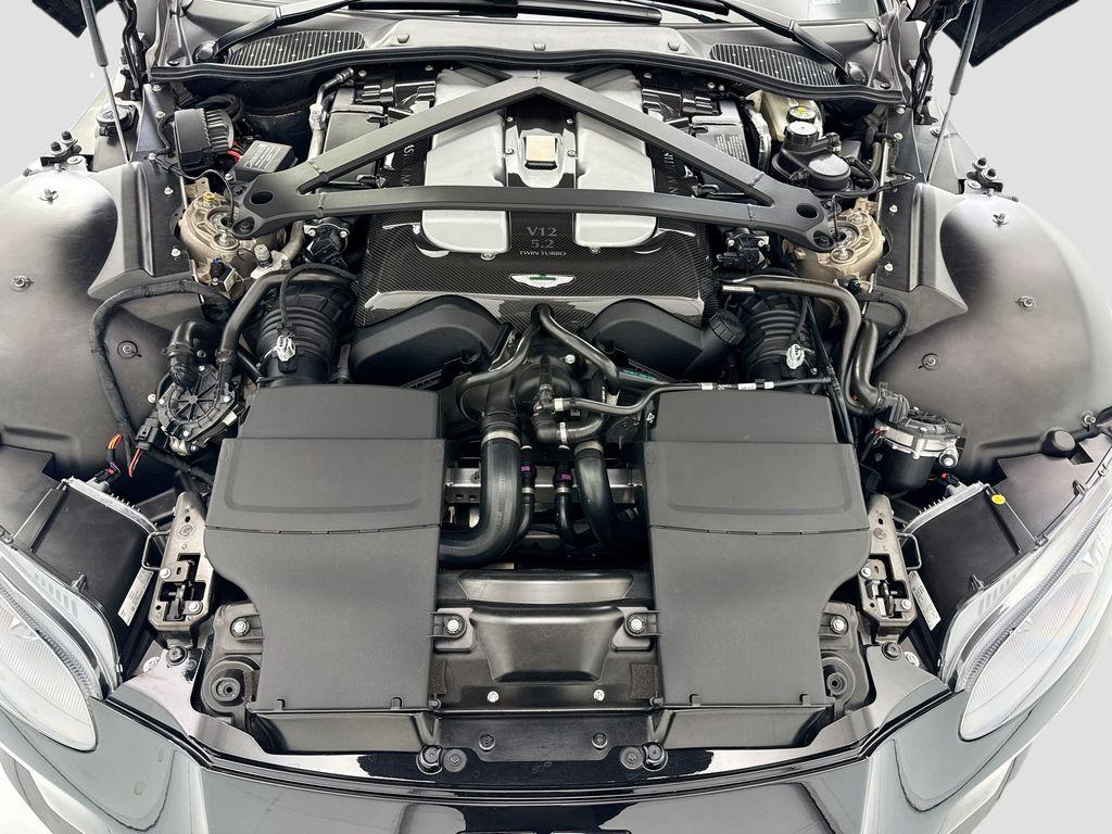 2023 Aston Martin Vantage V12 690hp 5.2L Twin Turbo V12 EngineCarbon fiber clamshell bonnet and front bumper21"" Alloy Wheels4-wheel ventilated, Carbon Ceramic disc brakeswith Anti-lock Braking System (ABS)8-speed automatic transmission, rear-midmountedAlloy torque tube with carbon fiber propellershaftElectronic Rear Differential and DynamicTorque VectoringFull LED Headlights with integrated DRLs, sidelights, and cornering lights3 Selectable Drive Modes - Sport, Sport+, TrackQ - Exterior PaintCarbon Pack - LowerSeatbelts GraphiteContrast StitchingSmoked Rear LampsInterior Package - 2x2 Twill S Carbon Tailpipes - Matte Black Leather Color - Contemporary Brake Calipers - Yellow Aston Martin Premium Audio Carpet Color - Contemporary Carbon Fiber Lightweight Seat Headlining - Contemporary Alcantara Front Grille Vaned - Black