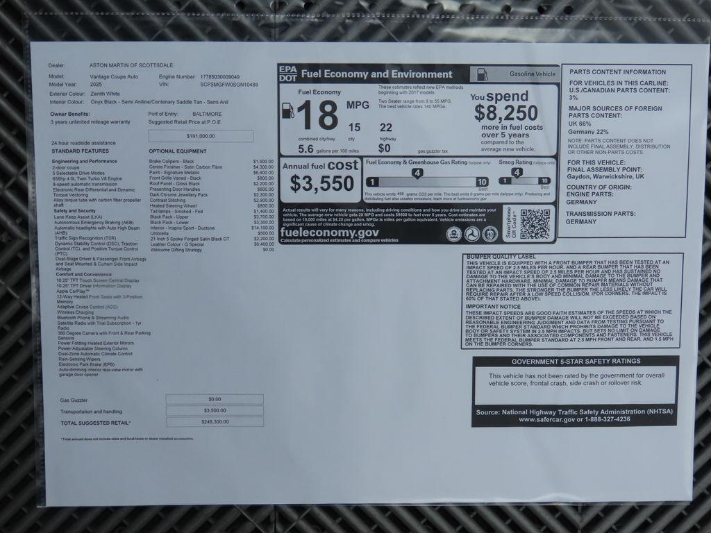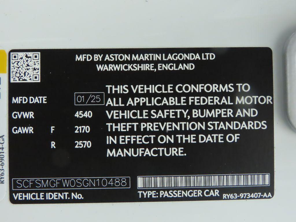 2025 Aston Martin Vantage V8 remaining factory warranty until 2/17/2029