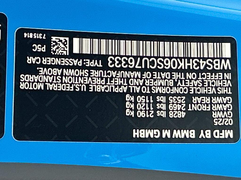2025 BMW M4 CS Riviera Blue IncludedFull leather Merino Anthracite IncludedApple CarPlay and Android Auto IncludedBMW Individual Riviera Blue $ 4,500.00Remote Engine Start IncludedM Drive Professional IncludedM front end strut brace IncludedM Sport Differential IncludedMobility Kit IncludedAdaptive M Suspension Included19""/20"" M Star Spoke Black For IncludedRear View Camera IncludedYellow Front Headlights IncludedM Compound Brake with Black Ca IncludedComfort Access keyless entry IncludedM Seat Belts IncludedCarbon Fiber trim IncludedAuto-dimming interior and exte IncludedAuto-dimming rearview mirror IncludedM Carbon Bucket Seats IncludedHeated front seats IncludedActive Driving Assistant IncludedActive Guard IncludedPark Distance Control IncludedDual Zone Auto Climate Control IncludedLED Headlights w/ Laserwire Ta IncludedBMW Assist eCall IncludedBMW TeleServices IncludedConnectedDrive Services IncludedConnected Package Pro Limited IncludedWireless Device Charging IncludedPersonal eSIM 5G IncludedBMW Curved Display with HUD IncludedSiriusXM w/ 360L + 1 year Plat IncludedHarman Kardon surround sound s IncludedM Driver's Package IncludedM Alcantara steering wheel IncludedM Carbon Exterior Package IncludedShadowline exterior trim IncludedAnthracite headliner IncludedControl body IncludedRefrigerant IncludedControl D IncludedDestination Charge $ 1,175.00Total Suggested Retail Price $ 129,175.00
