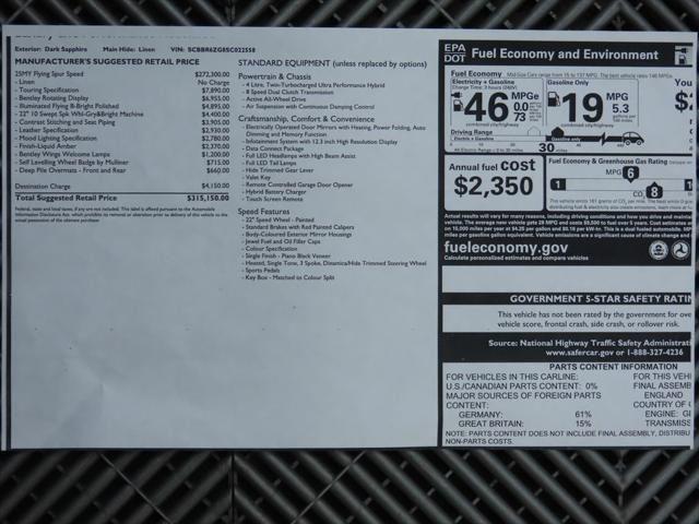 - Tires P275/35WR22 summer performance BSW front tires and P315/30WR22 summer performance BSW rear tires